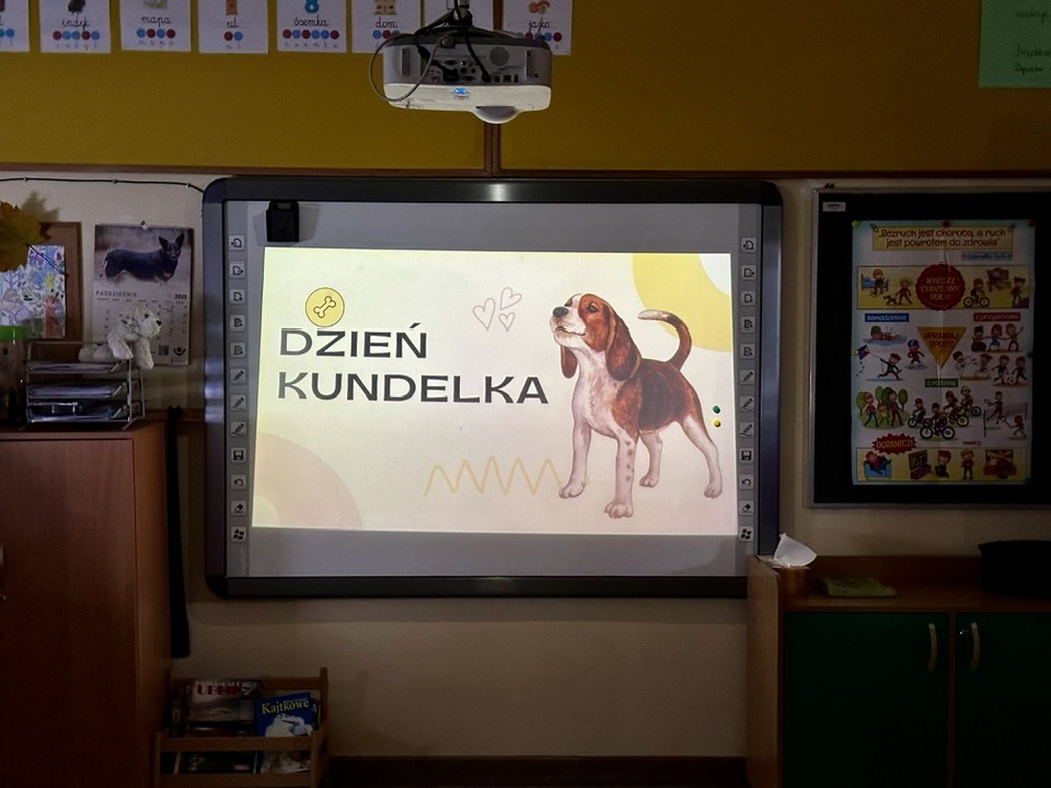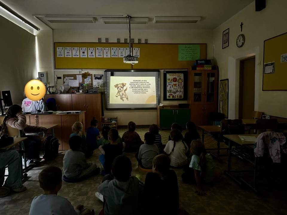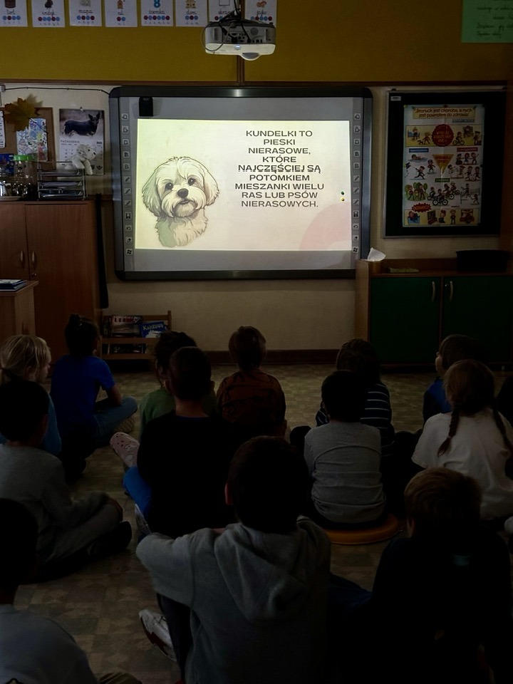 Dzieci uważnie przyglądały się wyświetlanym slajdom i słuchały informacji na temat Dnia Kundelka. Po zakończeniu prezentacji uczniowie mieli czas na zadawanie pytań oraz udzielanie odpowiedzi do przedstawionego materiału.
