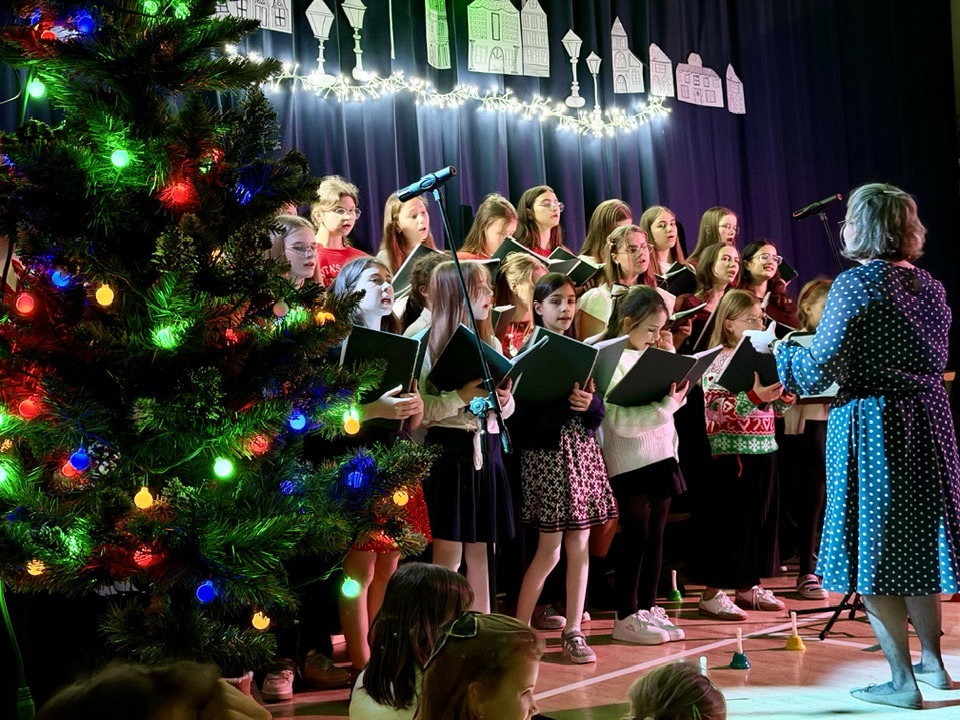 Wspólne kolędowanie po raz kolejny pokazało, jak wyjątkowe chwile potrafimy tworzyć razem. W tym roku szkolny chór zaprosił do współpracy chętnych uczniów z klas 1-3. Wyszło pięknie! Brawa dla ich zaangażowania i pasji, dzięki czemu mogliśmy poczuć niepowtarzalny klimat tego spotkania.