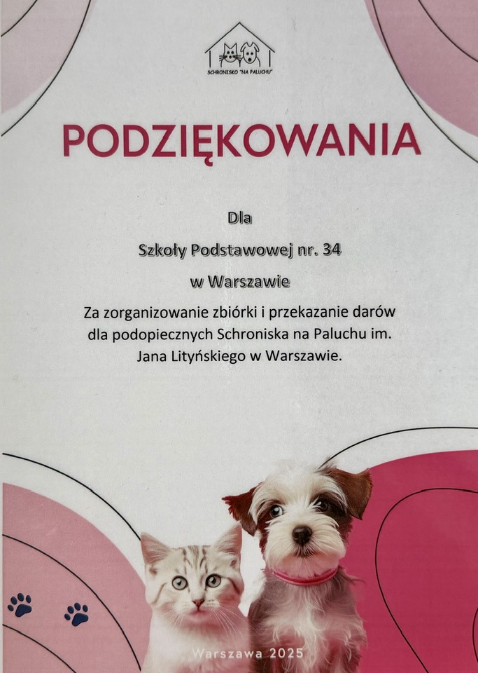 Mikołajkowa zbiórka karmy "Pucha dla Palucha" dla podopiecznych Schroniska "Na Paluchu", zorganizowana w ramach projektu edukacyjnego "Dzieci dla Zwierząt" zakończona.