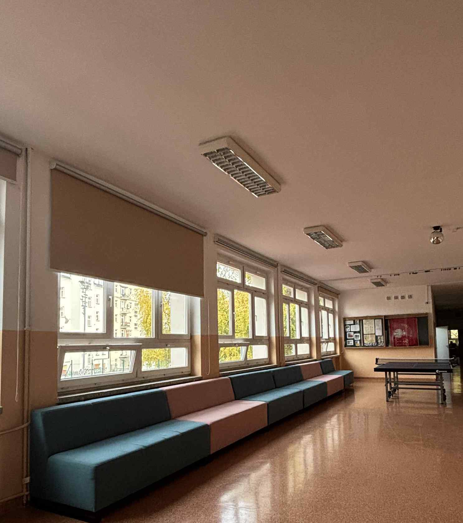 W strefie ciszy na pierwszym piętrze pojawiły się nowe, wygodne kanapy - idealne, żeby się zrelaksować, poczytać lub po prostu złapać chwilę spokoju. Kanapy znajdziecie również na szkolnym korytarzu - to świetne miejsce, by porozmawiać z kolegami lub chwilę odetchnąć między lekcjami.