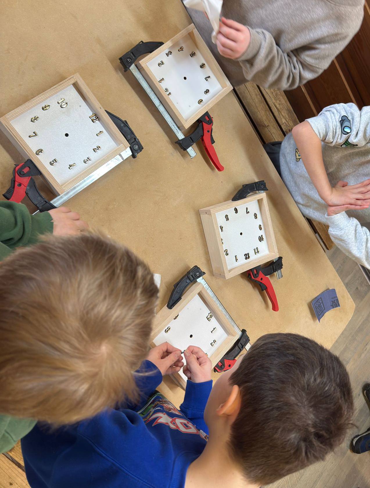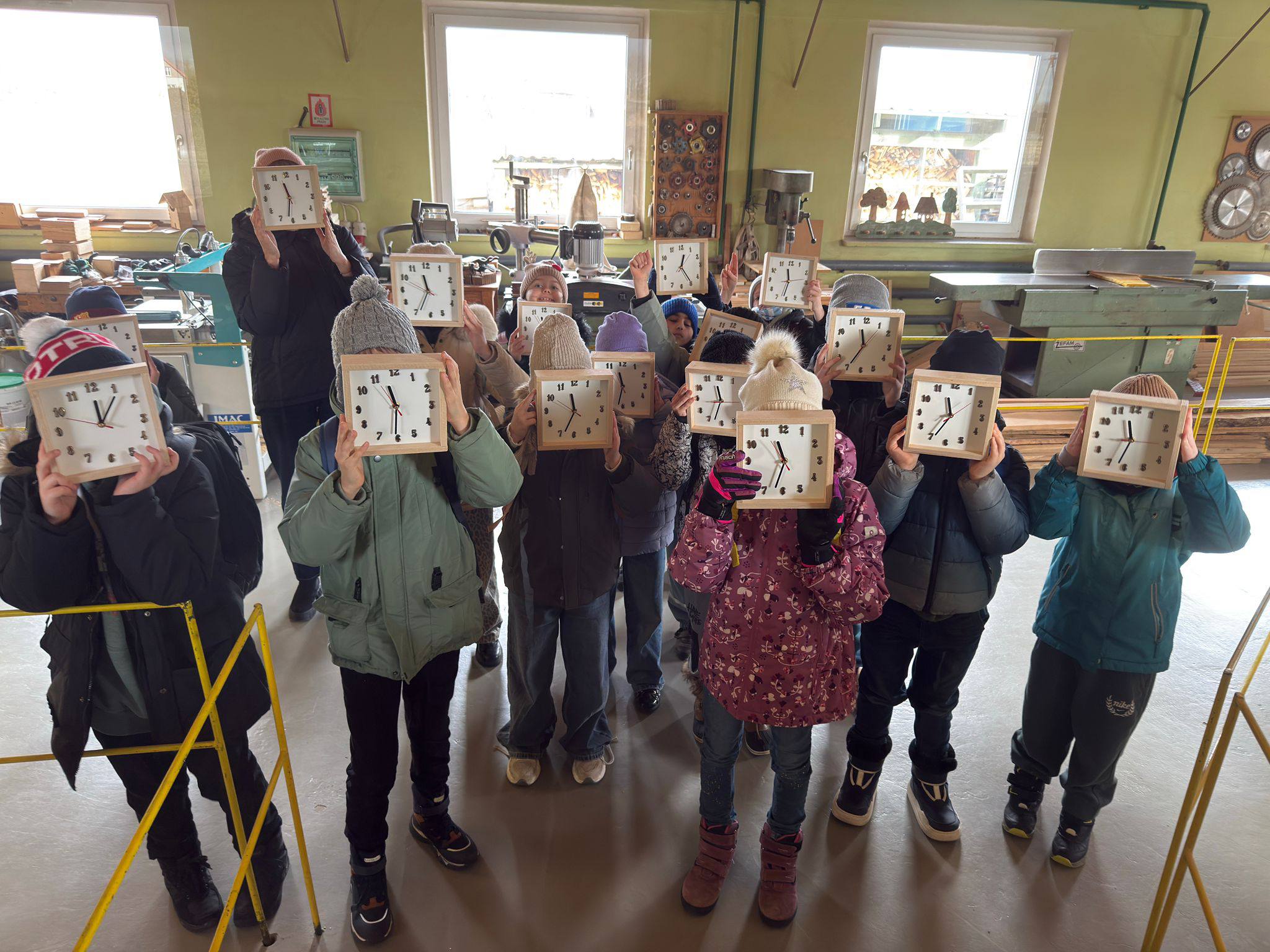 Dzieci, w ciekawej formie, zobaczyły jak powstają meble, jakich narzędzi używa stolarz, czym różnią się poszczególne gatunki drewna i do czego mogą być wykorzystane. W trakcie warsztatów własnoręcznie wykonały zegary z drewna, dodając do nich cyfry i wskazówki w kolorze złota.